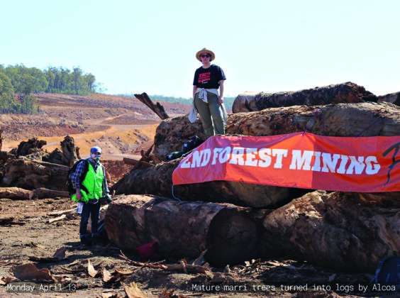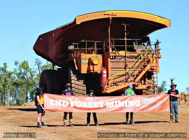 Conflict between Alcoa and the movement to end forest mining continues unabated, including an April 13th direct action by activists, the first of its kind since the 1970s, that stopped operations at the Huntly mine site for three hours.