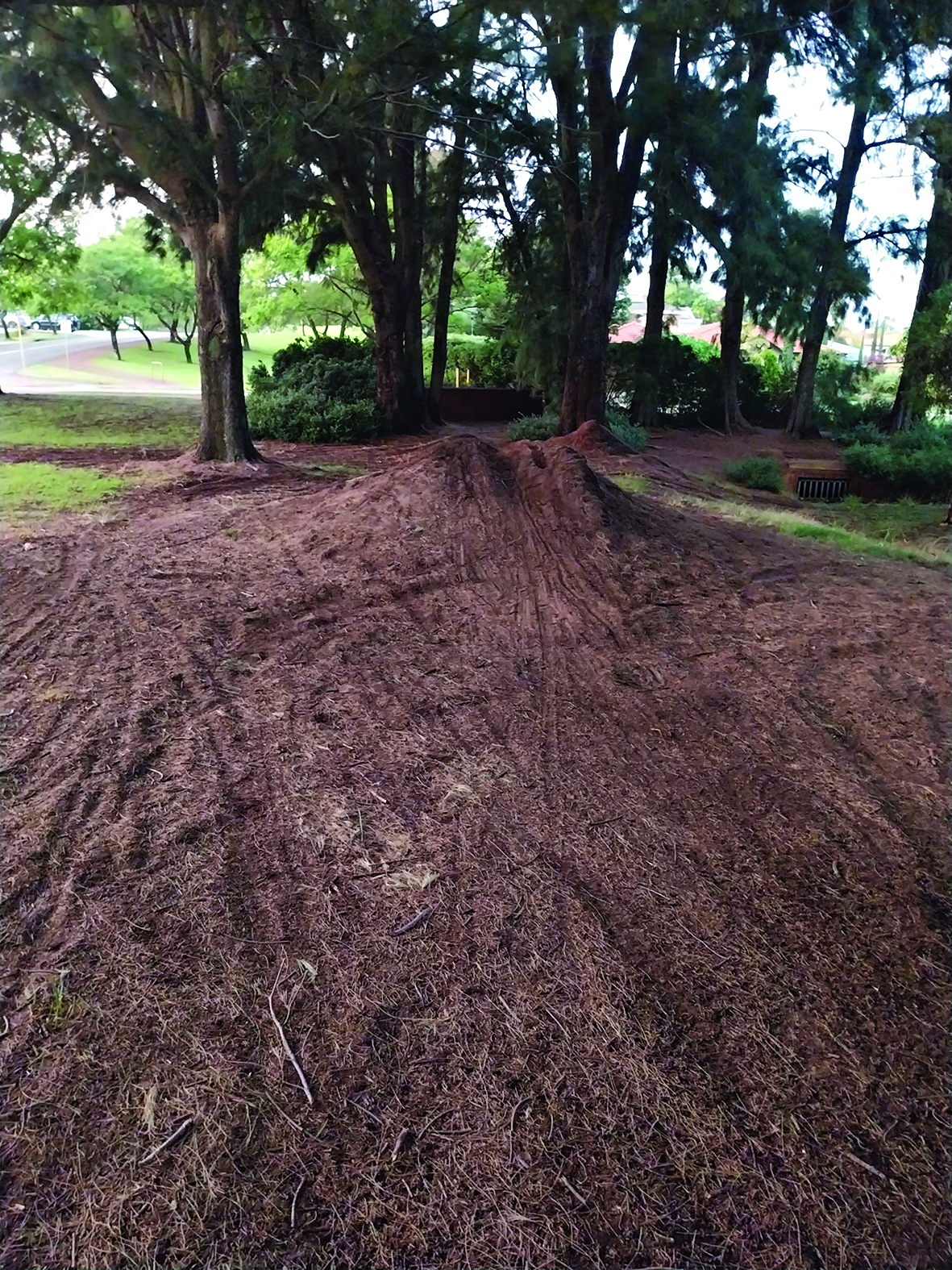 One resident said riders spin their wheels on the track and surrounding areas, which brings up dirt and leaves visible marks.