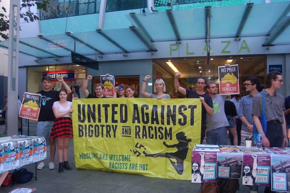 The United Against Bigotry and Racism campaign group held a protest against American president Donald Trump on Friday evening.